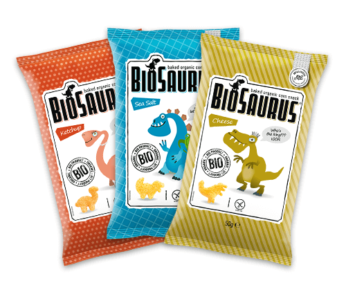 Kevyesti merisuolalla maustettu hauska saurus-snack joka maistuu myös perheen nuorimmille. Tuote valmistetaan erityisen matalaa lämpötilaa käyttäen, tämä varmistaa normaalia korkeammat mineraali-ja vitamiinipitoisuudet. Aitoa maissia 83 %, Proteiinia 6,5 grammaa, tämä orgaaninen tuote on myös täysin gluteeniton.